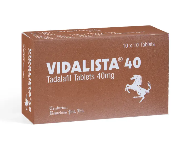 Vidalista 40mg is a generic version of Cialis, manufactured by Centurion Laboratories in India. Each tablet contains 40mg of Tadalafil, an FDA-approved drug used to treat Erectile Dysfunction and sometimes benign prostatic hyperplasia (BPH).